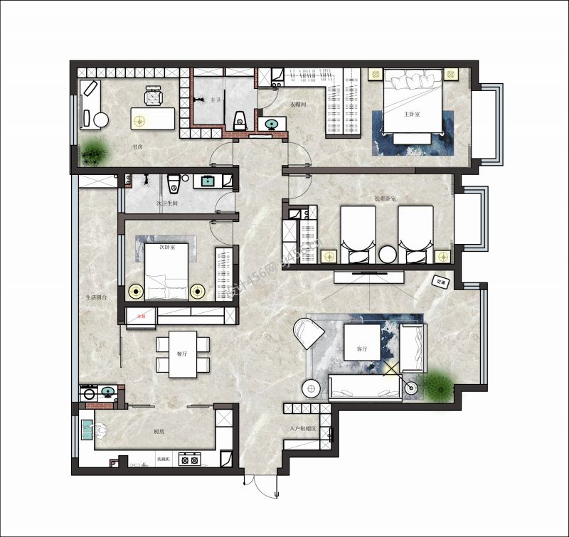 西港星汇国际130平现代轻奢风三室两厅装修案例风效果图