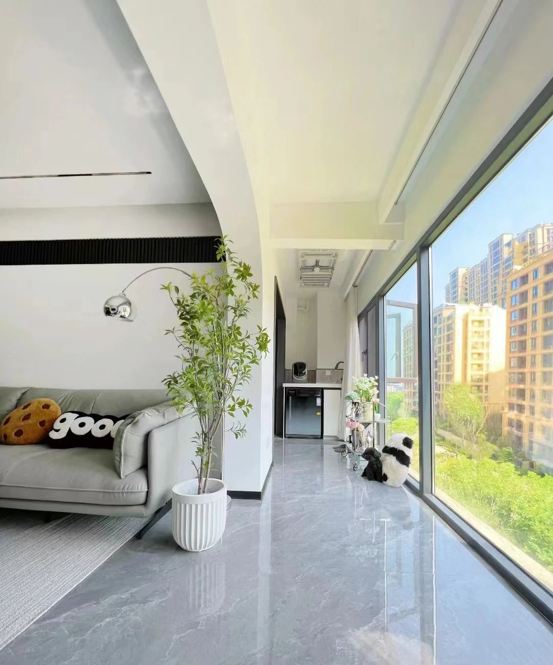 这种情况下,包进来的阳台其实就是室内的一部分了,阳台可以和室内地面最*好选择一样材质通铺,这样可以保持风格的一致性,视觉感更佳。