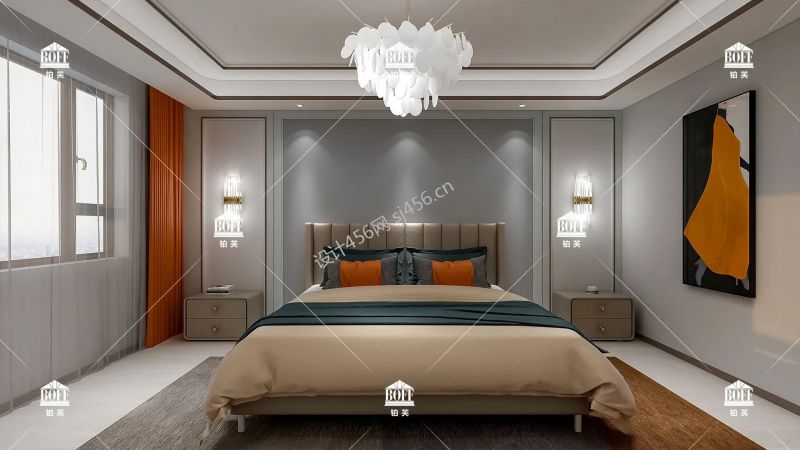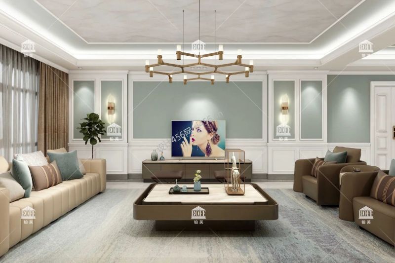 牡丹江铂芙艺术壁材轻奢风格三室两厅装修案例样板间风效果图