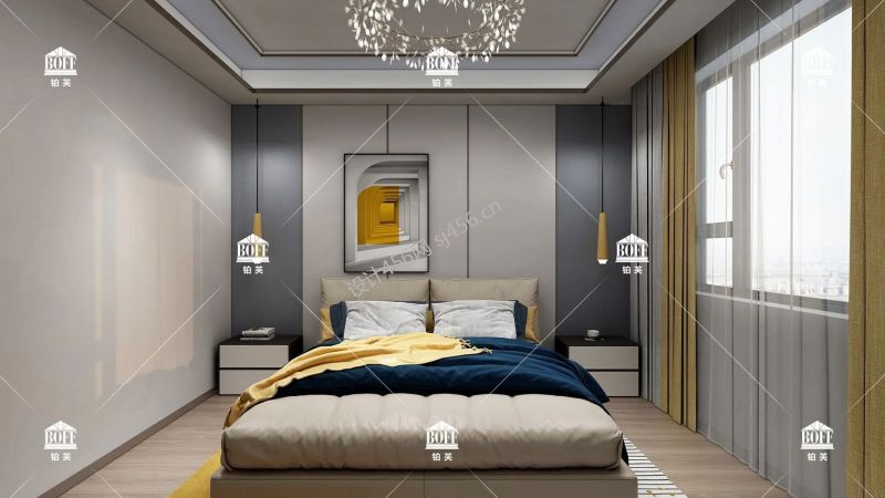 牡丹江铂芙艺术壁材现代风格三室两厅装修案例样板间风效果图