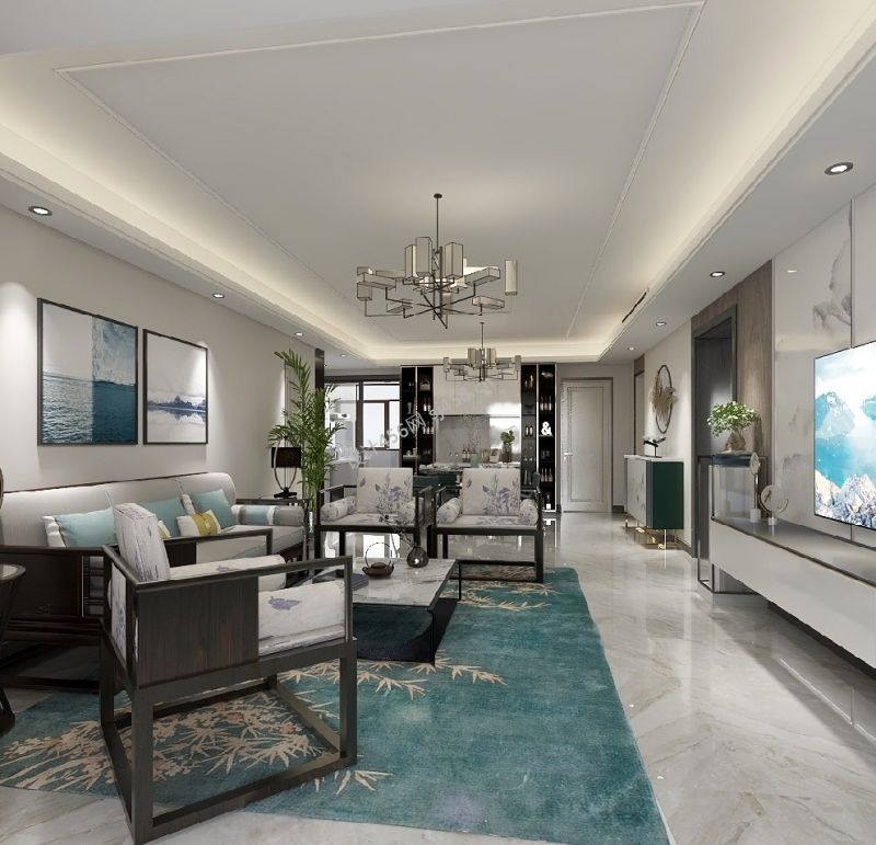 远大蔚蓝海岸新中式风格160平装修案例风效果图