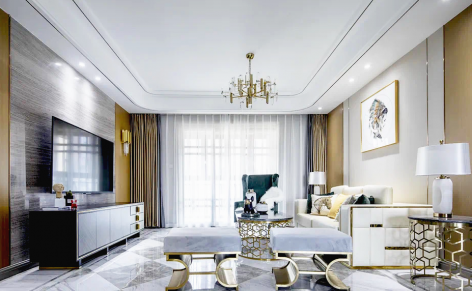 翡丽公馆现代轻奢风格119平装修案例风效果图