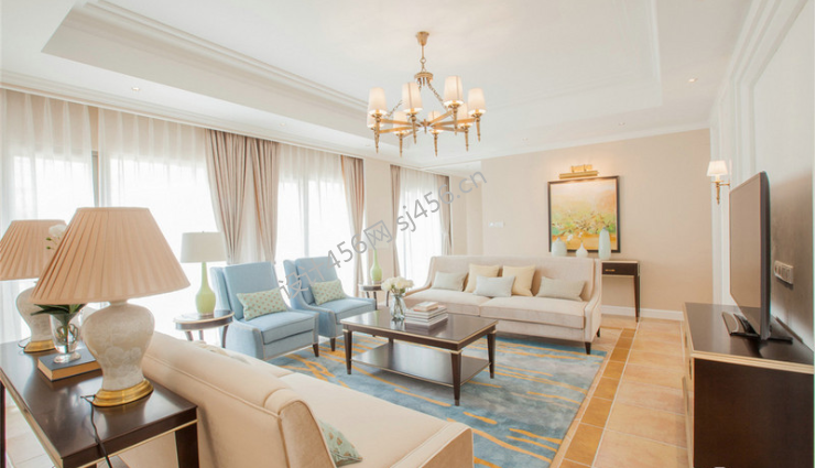 翡丽公馆美式经典风格132平装修案例风效果图