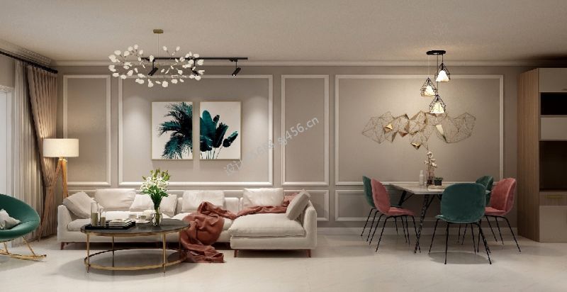 翡丽公馆现代轻奢风格119平装修案例风效果图