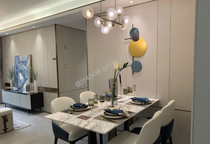 现代轻奢风格88平餐厅餐桌装修效果图