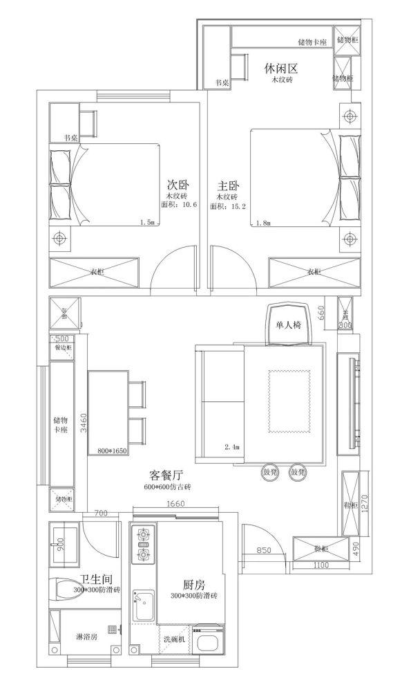 餐厅设计成卡座+储物柜的设计,不仅节省了空间,还增加了收纳空间,一举两得。