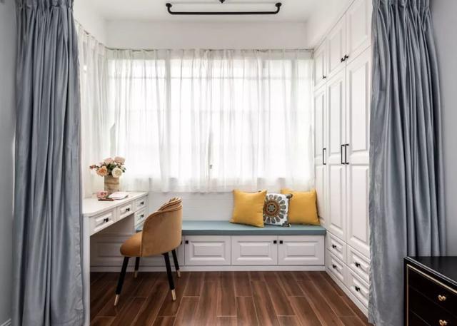 主卧的阳台改造成了书房,定制榻榻米书桌,将收纳做到了极致。根本无需担心收纳空间不够。