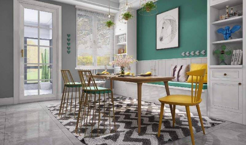 北欧风格92平米餐厅吊灯桌子装修效果图