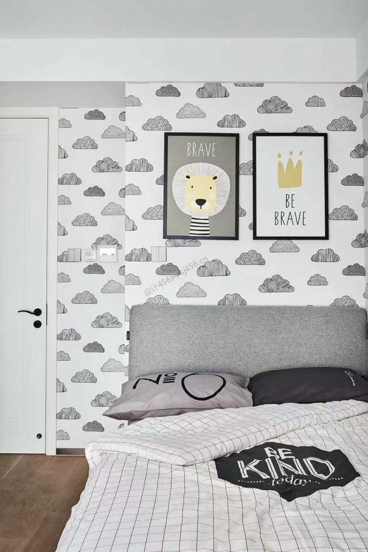 简约风格三居室卧室床头背景墙壁纸装修效果图
