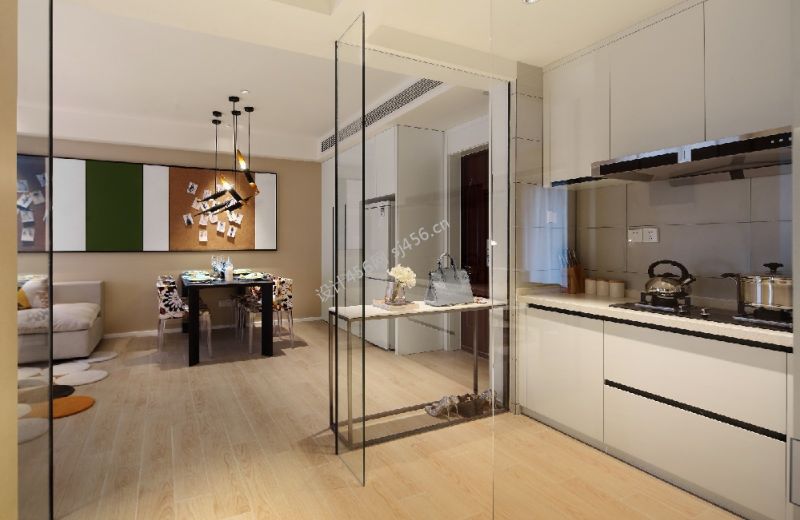 阳光公园学府现代风格94平米二居室装修效果图案例风效果图