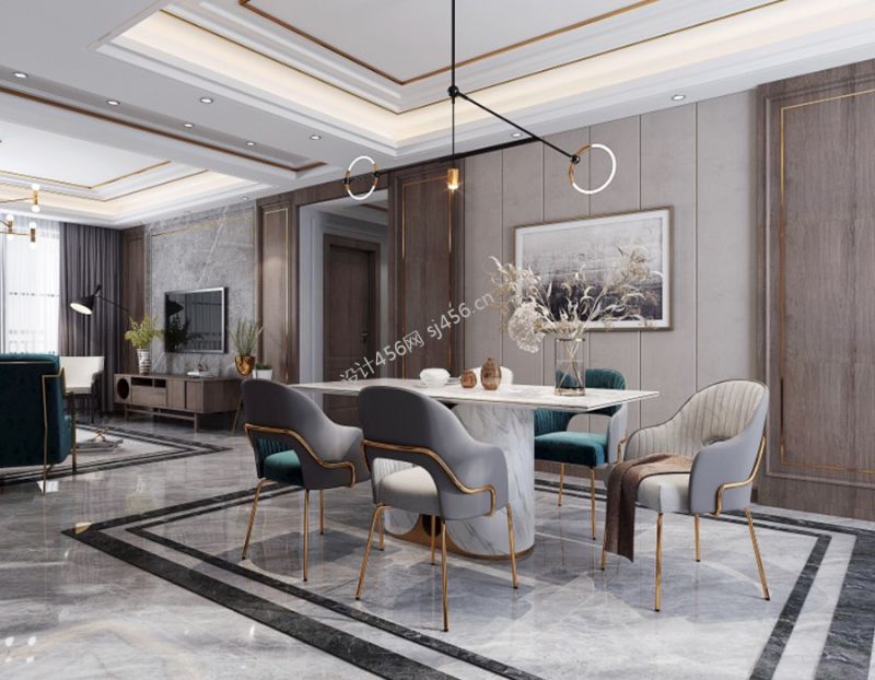 大合华府轻奢风格162平米三居室装修设计图案例风效果图