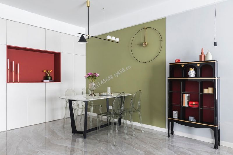 现代风格103平米餐厅背景墙柜装修设计效果图