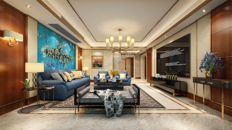 逸合·中央公园轻奢风格126平米三居室装修效果图案例风效果图