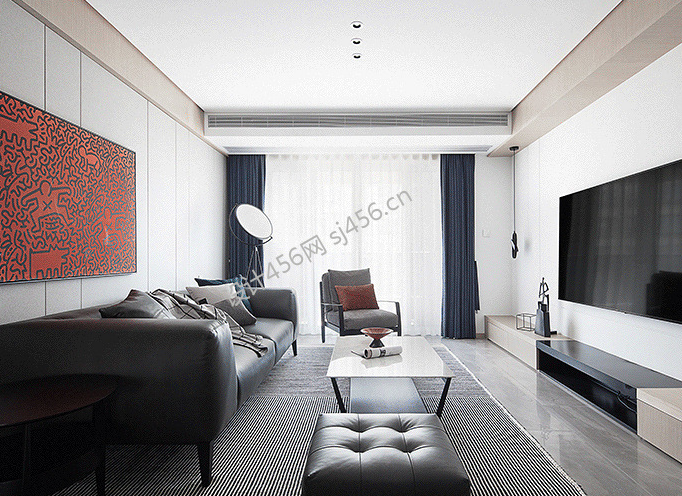 现代风格144平米三居室客厅沙发背景墙装修设计图