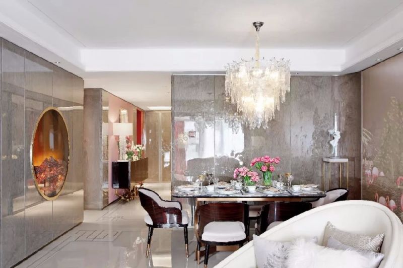 轻奢风格180平米餐厅吊灯灯具装修效果图