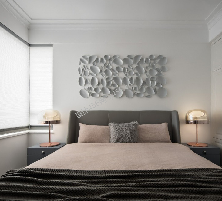 89平米三居室卧室床头背景墙装饰装修效果图