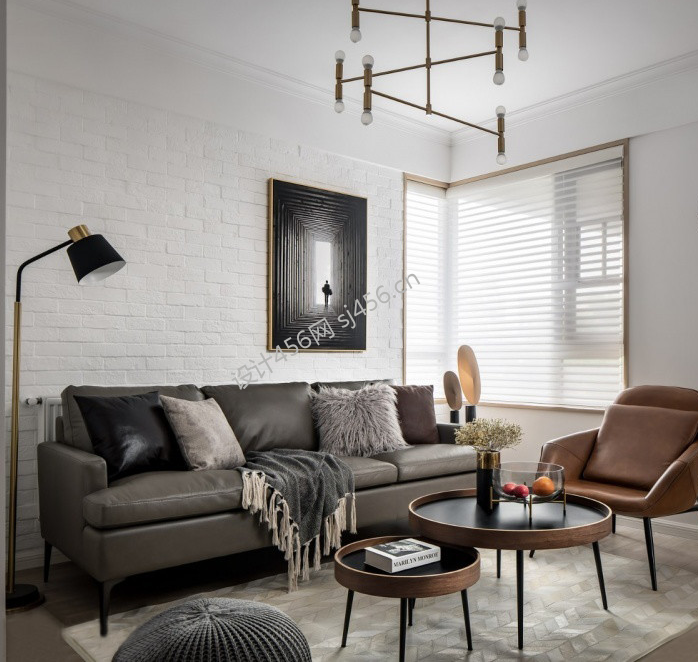 现代风格89平米三居室客厅吊灯灯具装修效果图