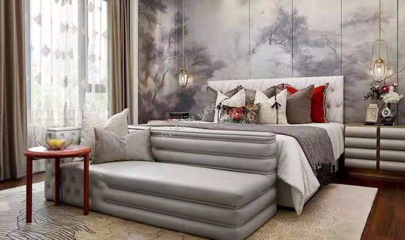 140平米三居室卧室床头背景墙壁纸装修效果图
