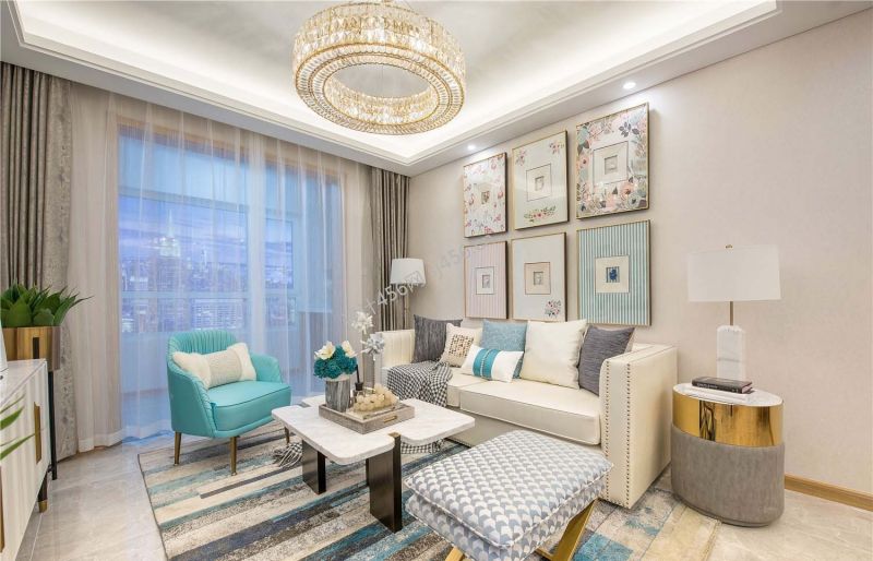 鸿通·九熙府轻奢风三居室98平米设计效果图案例风效果图