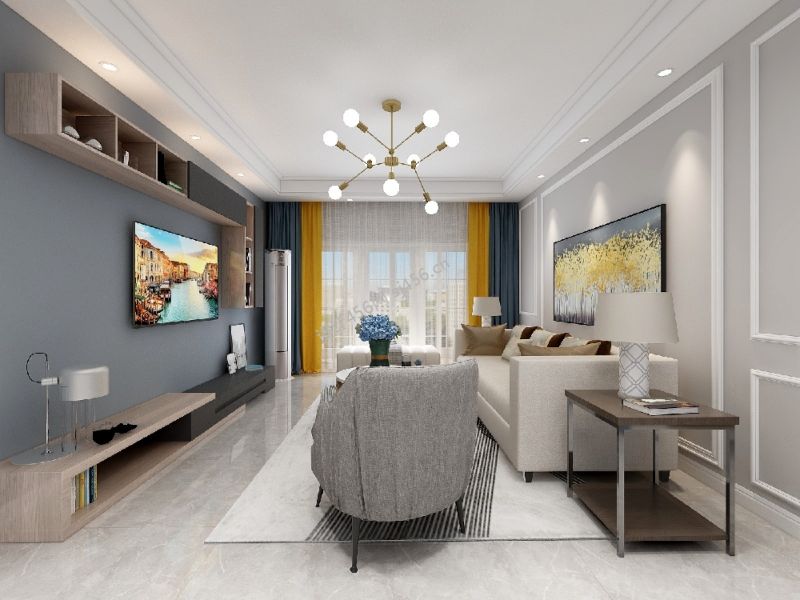天誉.锦樾简约风格89平米二居室装修设计图案例风效果图