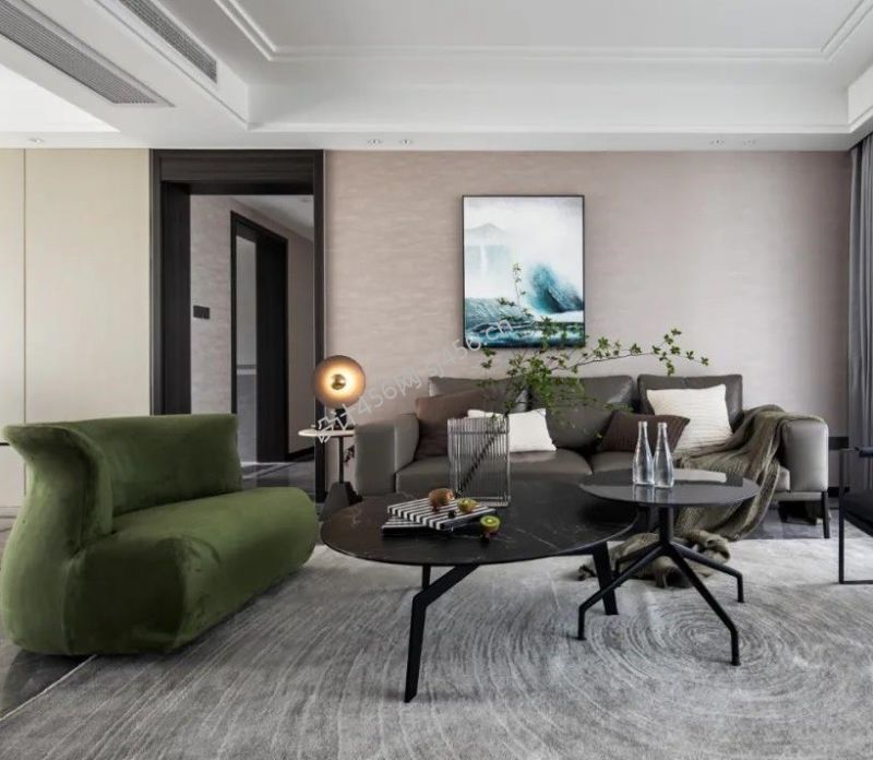 逸合·中央公园轻奢风格三居室96平米装修案例风效果图