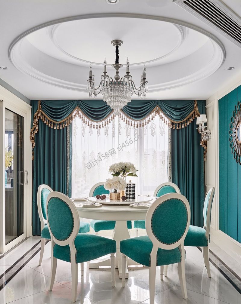 法式风格180平米复式餐厅吊顶装饰装修效果图