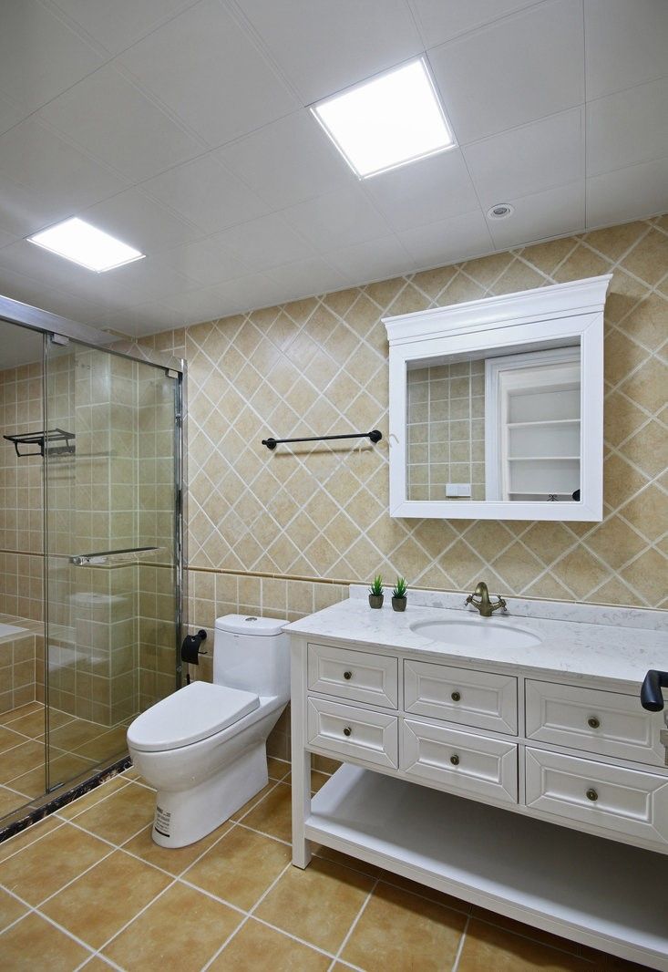 美式风格93平米卫生间墙砖设计装修效果图