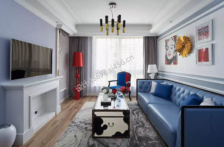 美式风格86平米二居室客厅沙发背景墙装修效果图