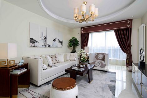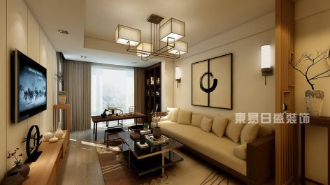 天来豪庭新中式风格89平米两居室装修效果图风效果图