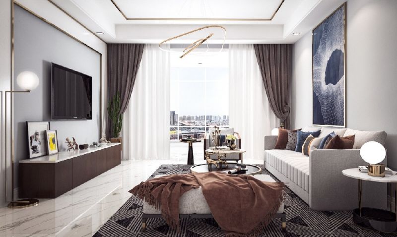 绿地·四季印象现代风格85平米二居室装修效果图案例