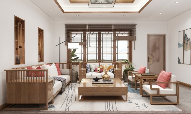 蓝光雍锦半岛新中式风格140平米四居室装修效果图案例