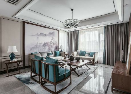 和韵名都新中式风格128平米三居室装修设计图案例风效果图