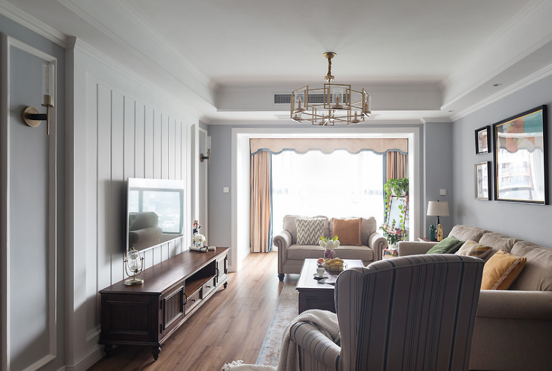 昌信万卷山河美式风格119平米三居室装修效果图案例