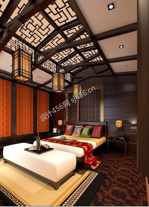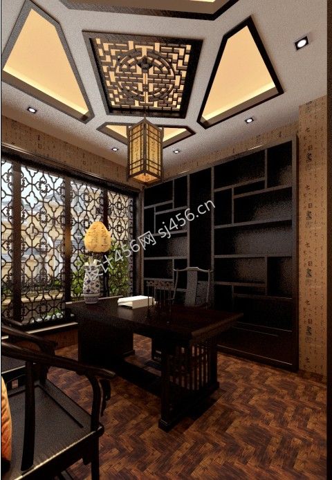2020中式风格书桌图片 2020中式风格书房吊灯图片