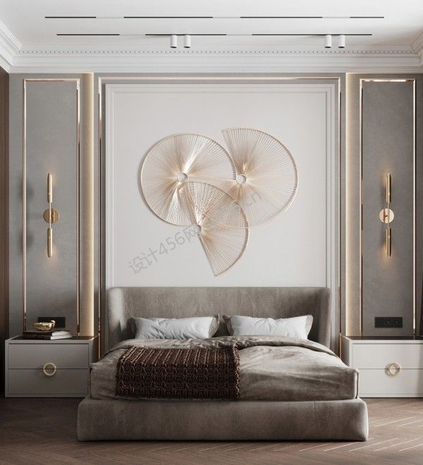 125平米三居室卧室床头背景墙装修效果图欣赏