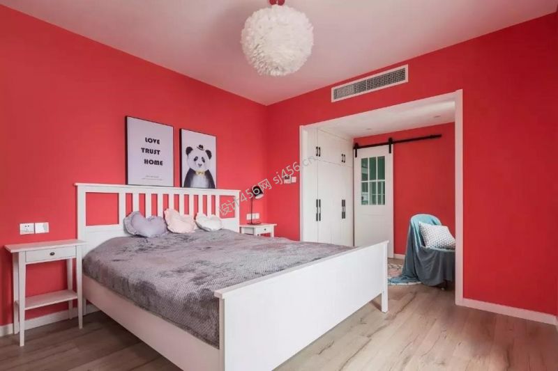 北欧风复式102平米卧室床头背景墙装修效果图
