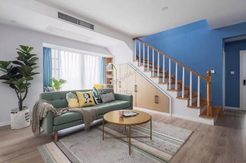 北欧风复式102平米客厅地毯装修效果图