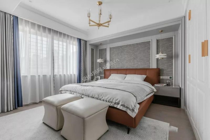 轻奢风126平米卧室床尾凳装修效果图