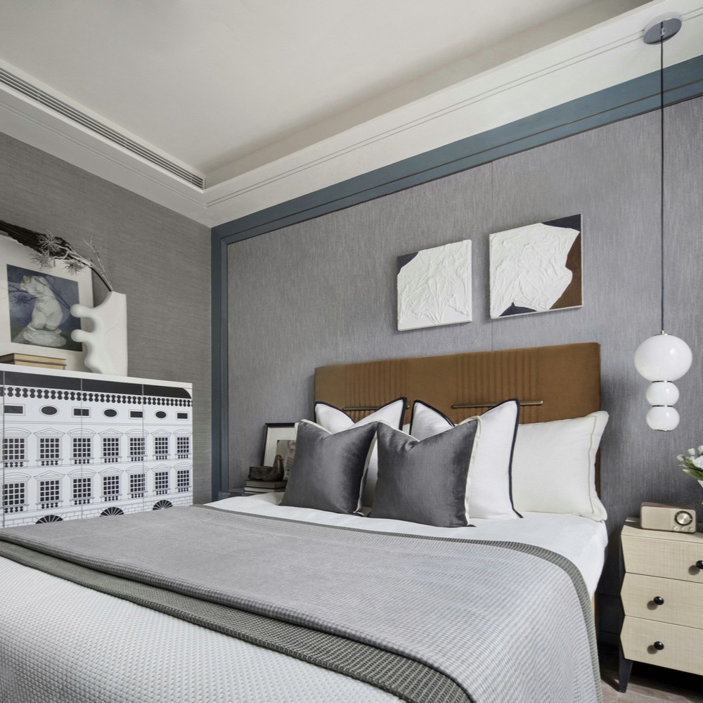 4.在采用墙漆颜色统一色系时,应比墙面的明度更高一些。为墙面选择浅色调或偏冷的色系,当然也可以将周围的墙面和天花板,甚至细节部门如门框、窗框都漆成相同的颜色,使整个空间扩大。