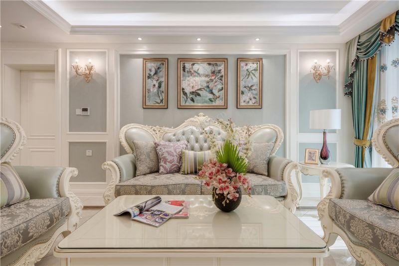 鹏欣水游城185平米新古典风格三居沙发背景墙装修设计效果图