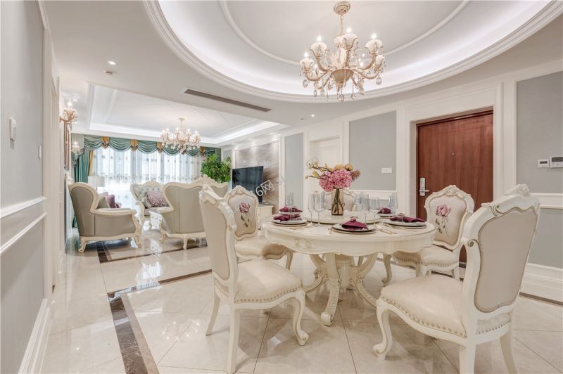 鹏欣水游城185平米新古典风格三居餐厅吊顶装修设计效果图