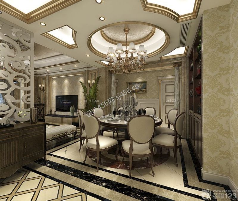 欧式餐厅装修效果图 吊顶造型装修效果图片