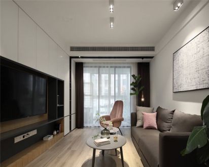 新港花苑100㎡两居室现代简约风格客厅装修效果图
