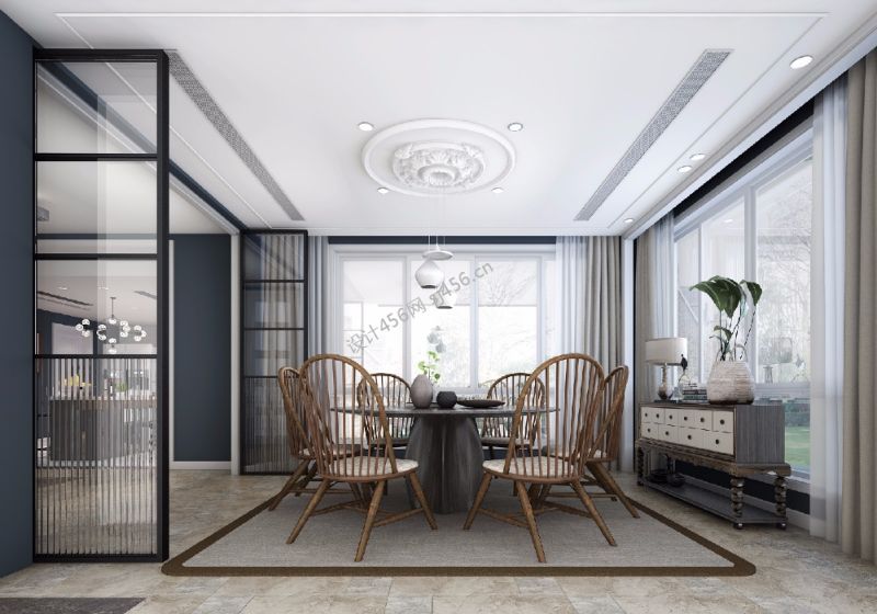 融创慈澜府新中式风格200平米装修案例风效果图