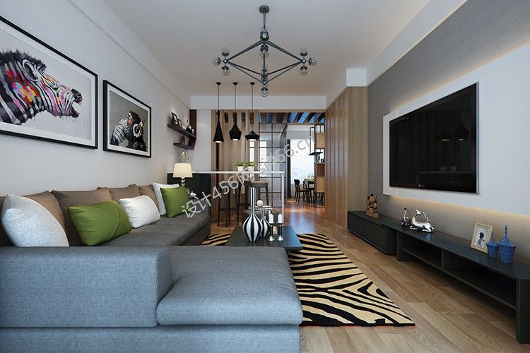 湖成大境府现代风格102平米三居室装修案例风效果图