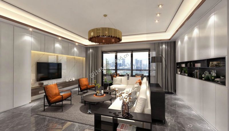 湖成大境府现代风格102平米三居室装修案例风效果图