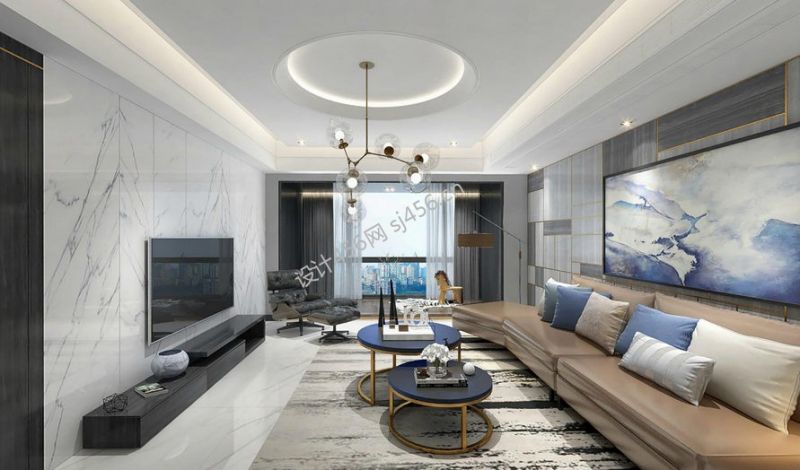 荣安柳岸风荷简约风格128平米装修案例风效果图
