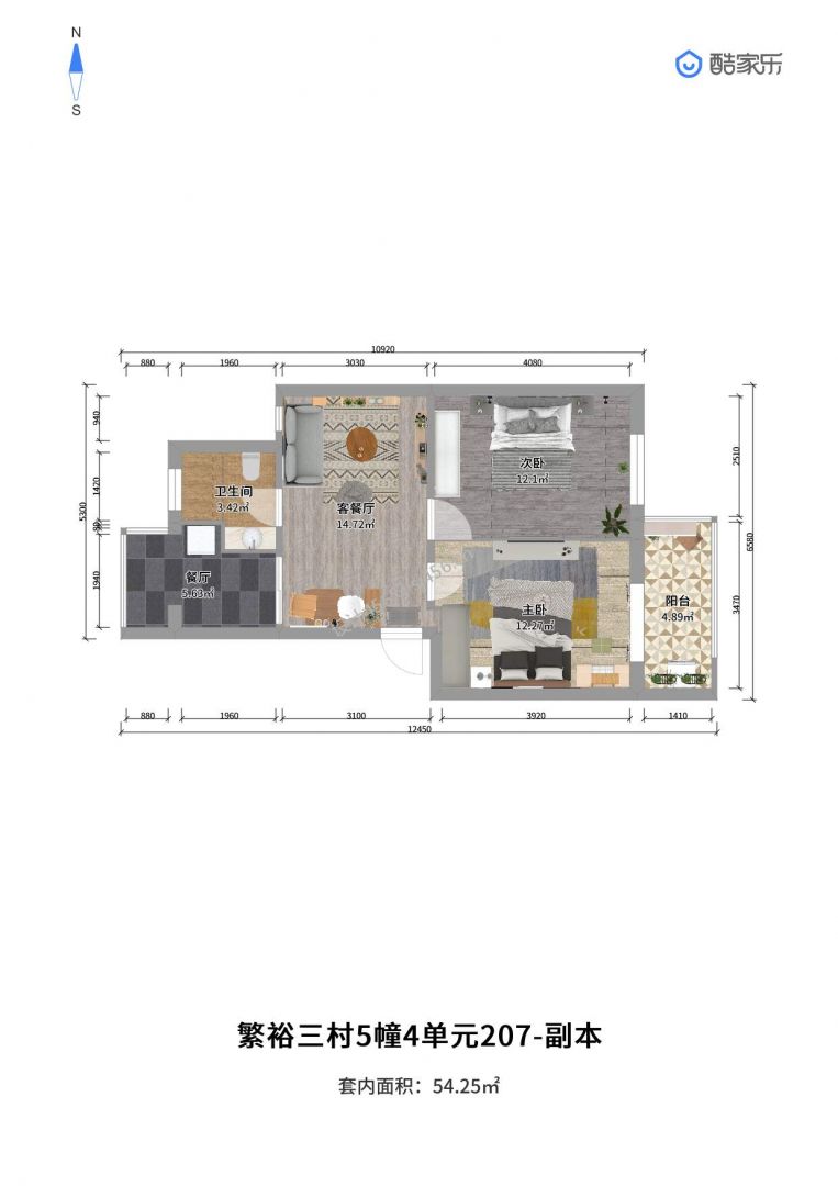 湖成大境府现代风格102平米三居室装修案例风效果图