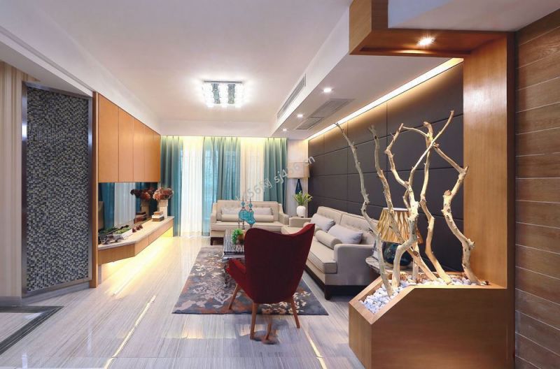 保利蓝海嘉居100平现代风格三居室装修案例风效果图