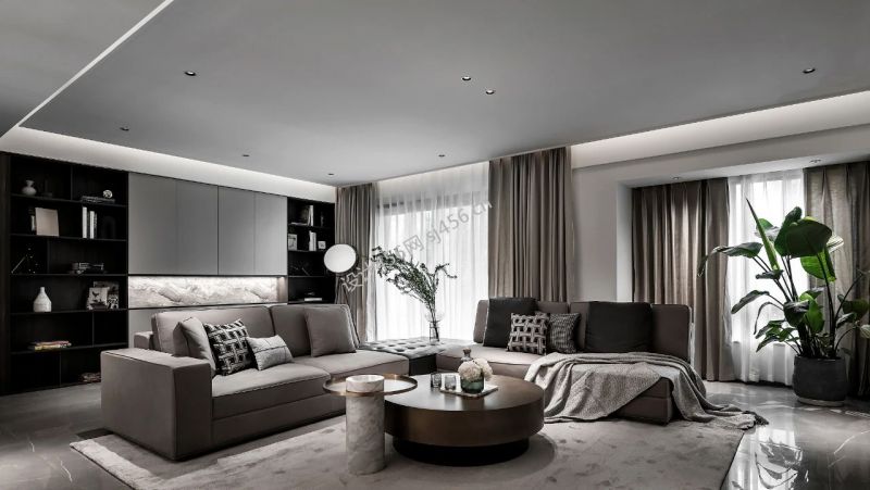 保利蓝海嘉居100平现代风格三居室装修案例风效果图
